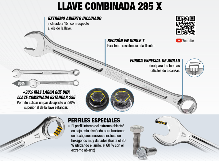 •  +30% MÁS LARGA QUE UNA LLAVE COMBINADA ESTÁNDAR 285